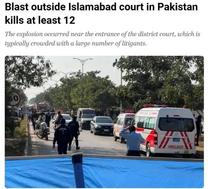 此前据中国新闻网征引卡塔尔半岛电视台报说念,巴基斯坦齐门伊斯兰堡警方称,当地技巧11日,巴基斯坦齐门伊斯兰堡一座法院大楼外发生爆炸,变成至少12东说念主弃世,多东说念主受伤。