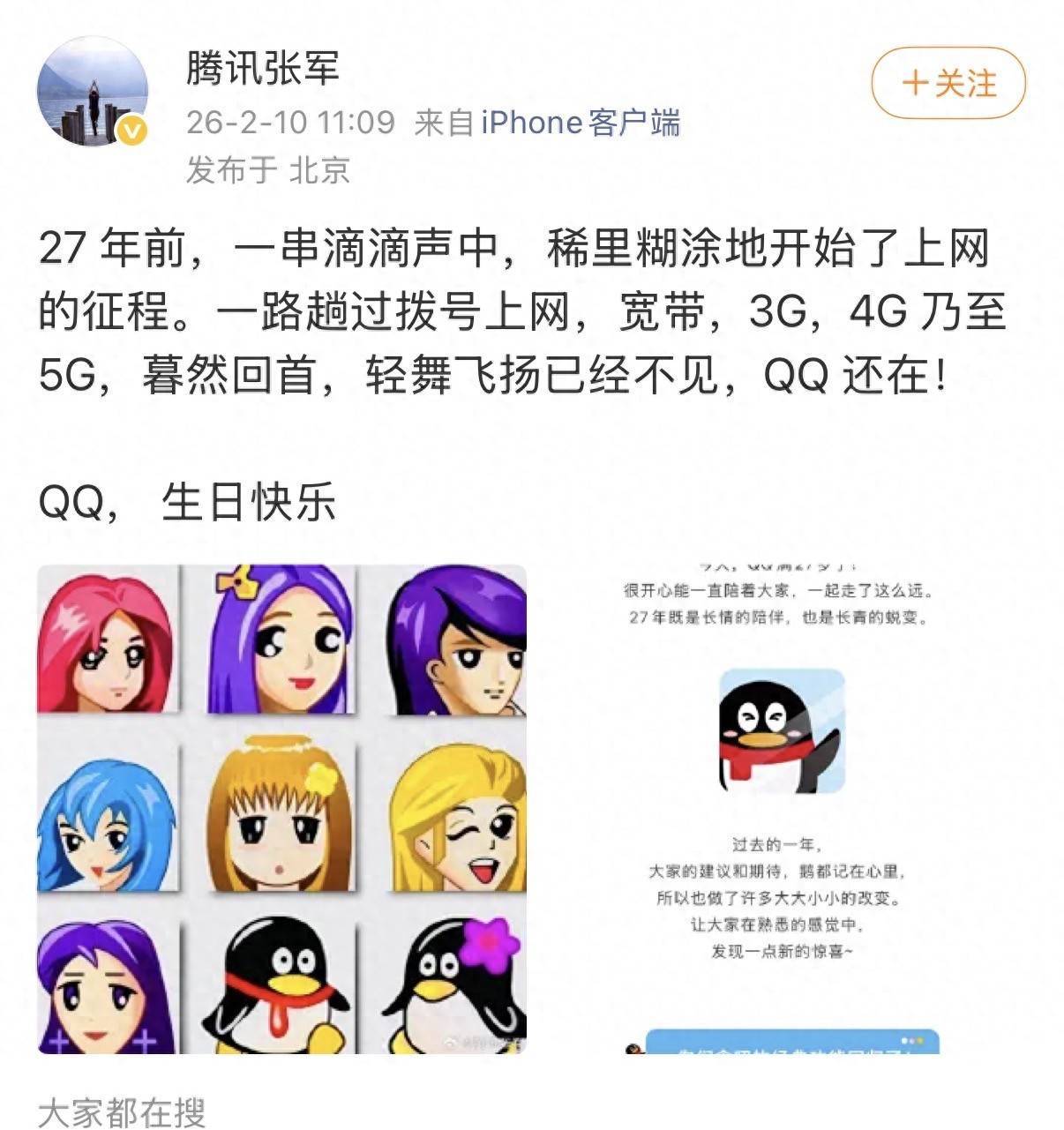 当天,腾讯公关总监张军庆祝QQ火星电竞CHINA上线27年: